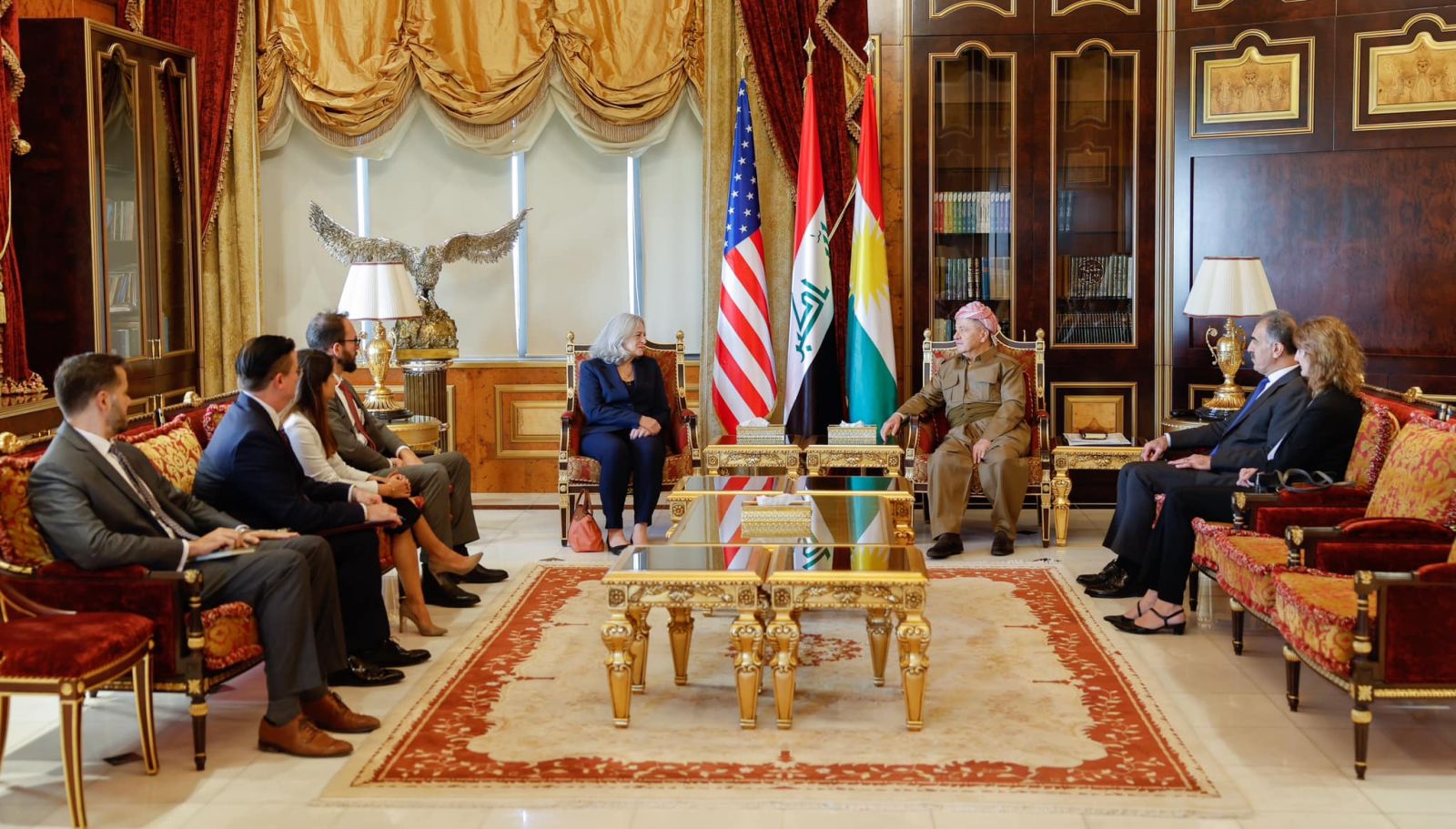 ڕۆژى دووشەممە (11/ئەیلوول/2023) سەرۆك مەسعود بارزانی لە سەلاحەددین پێشوازی لە خاتوو ئەلینا ڕۆمەناوسكی باڵیۆزی ئەمەریكا لە عێراق و شاندێكی یاوەری كرد.
