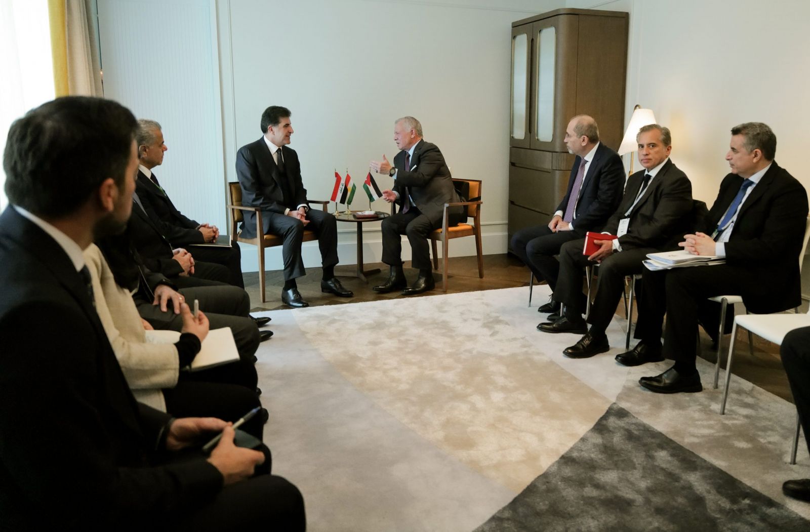 سەرۆکایەتیى هەرێمى کوردستان ڕایگەیاند، پێشنیوهڕۆى ئهمڕۆ شهممه (17/شوبات/2024) سەرۆک نێچیرڤان بارزانى، سهرۆكى ههرێمى كوردستان له كۆنفرانسى ئاساییشى میونشن له ئهڵمانیا، لهگهڵ شا عهبدوڵڵا بن حوسهینى دووهم، شاى ئوردن، كۆبووهوه و "دهربارهى پهیوهندییهكانى ئوردن لهگهڵ عێراق و ههرێمى كوردستان و دوا پێشهاتهكانى ناوچهكه، گفتوگۆیان كرد."