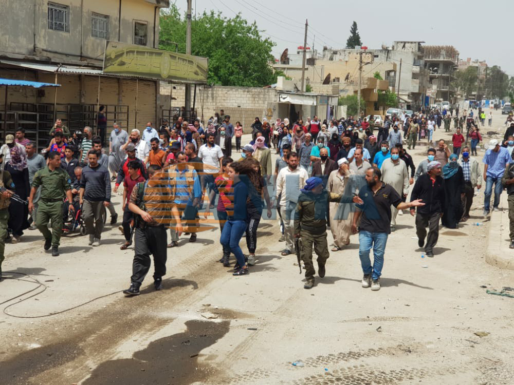 روانگهى سوورى بۆ مافهكانى مرۆڤ ئهو كات له راپۆرتێكدا ئاشكراى كرد، هۆكارى شهڕهكه بۆ ئهو پێشیلكاریى و ستهمه دهگهڕێتهوه كه میلیشیاكانى سووریا دهرههق به خهڵكى شارهكه ئهنجامى دهدهن.
