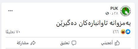 ئەمڕۆش لە تۆڕى کۆمەڵایەتیى فەیسبووک، پەیجى (PUK) نووسیوویەتى "بەمزوانە تاوانبارەکان دەگیرێن."
